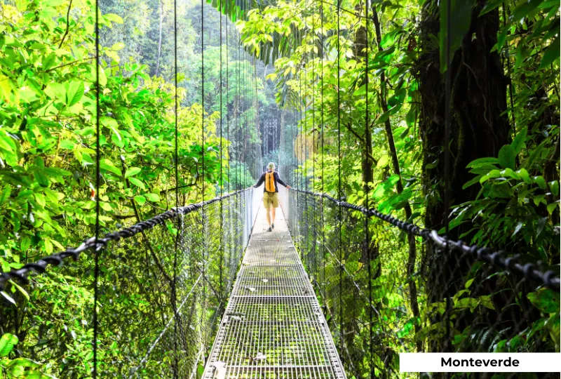 Alojamiento por 1 noche en San José, 2 noches en Arenal, 2 noches en Monteverde y 2 noches en Manuel Antonio.